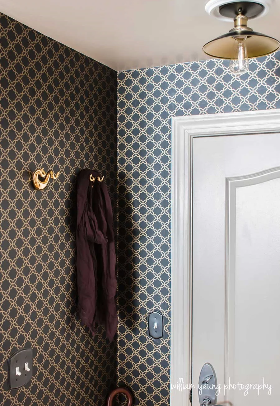 You can see the detail of my progress here, and some before photos that show the huge change in this tiny area. I believe that living in a small space should not be an impediment for living in big style! The entryway gives a first glance of your home's personality, and I definitely wanted this one to be GLAM!